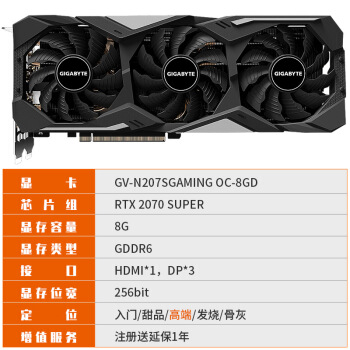 显卡>>技嘉(GIGABYTE)GeForce RTX 2070 SUPER GAMING OC 3X 8G 256bit GDDR6 使命召唤COD16吃鸡电竞游戏显卡