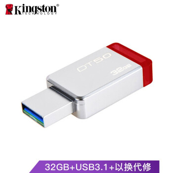金士顿(Kingston)32GB USB3.1 U盘 DT50 红色 金属外壳 无盖设计