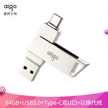 爱国者(aigo)64GB Type-C USB3.0 手机U盘 U350 银色 双接口手机电脑用