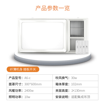 奥普(AUPU)浴霸 A6-c多功能集成吊顶风暖浴霸 LED大面板照明 双色变光 四键翘板开关