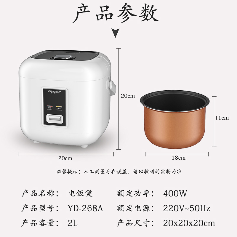 2L大容量家用电饭煲【不锈钢内胆/白色】