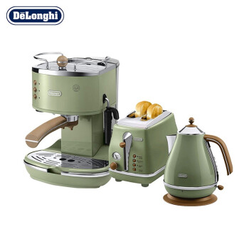 咖啡机>>德龙(Delonghi) 半自动咖啡机 电水壶 多士炉三件套 家用 欧洲原装进口打奶泡机ECO311 复古绿(送烘烤架)