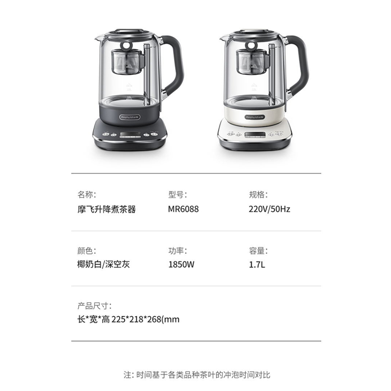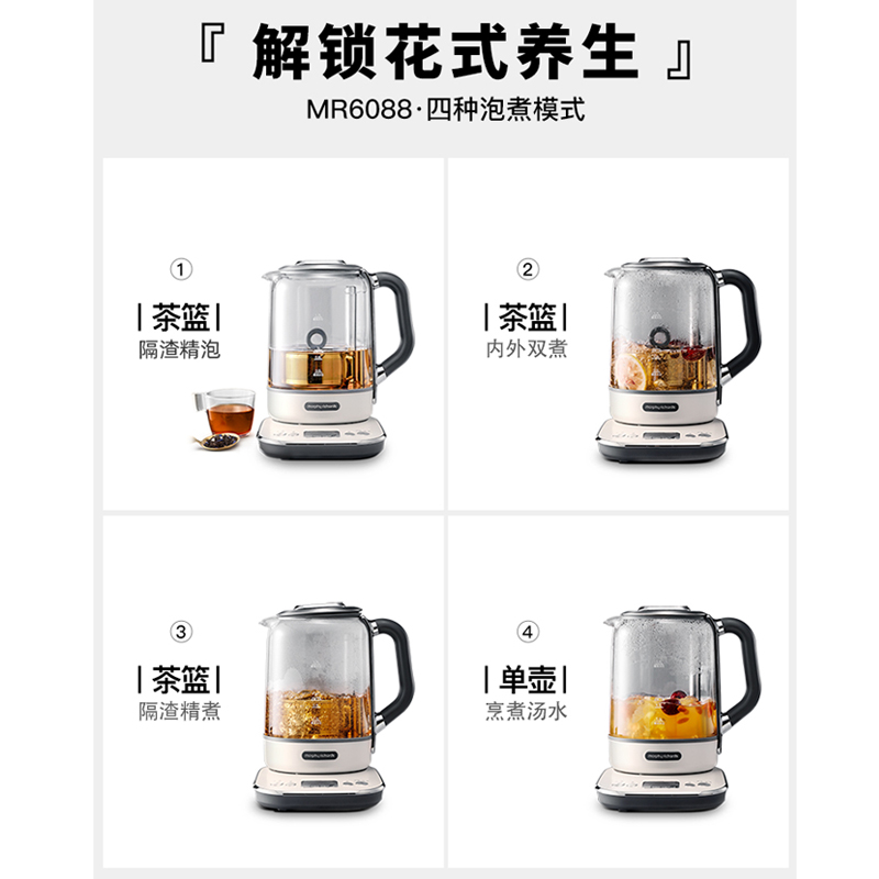 摩飞多功能升降煮茶器办公室全自动小型养生壶家用大容量花茶壶MR6088【不锈钢/颜色】