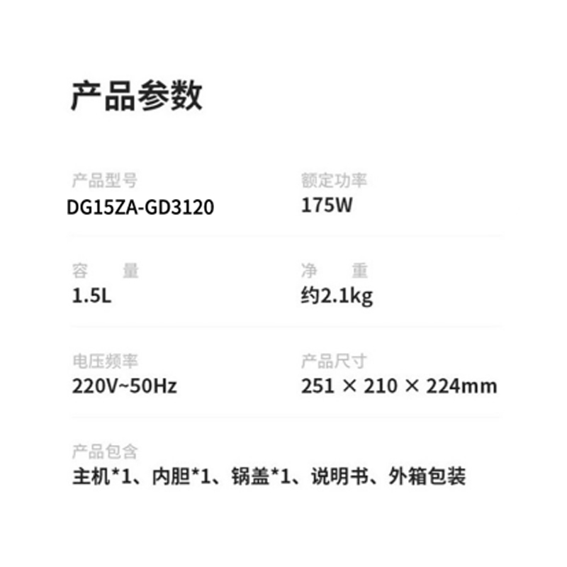 九阳(Joyoung)电炖锅紫砂锅保温1.5升家用多功能炖锅GD320【陶瓷内胆/白色】