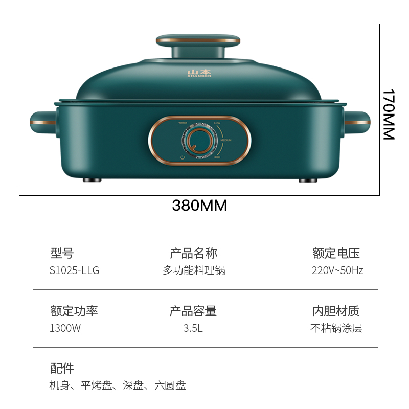 山本多功能料理锅绿色【不粘涂层/绿色】