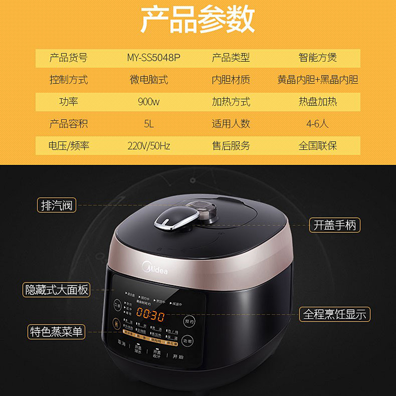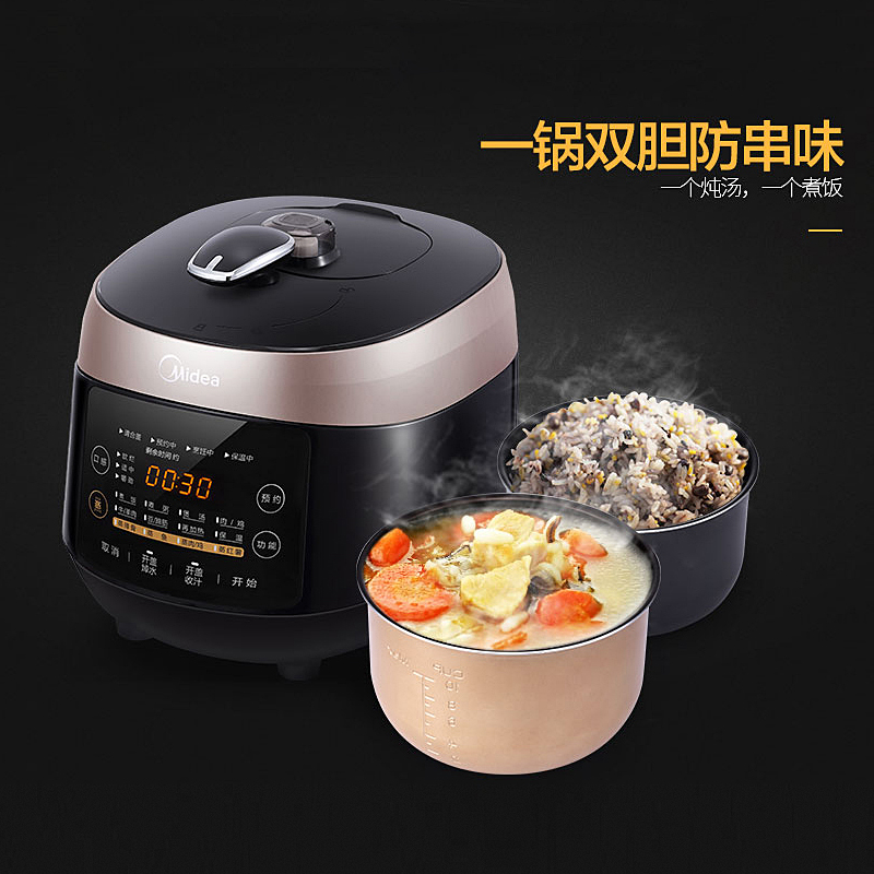 美的MY-SS5048P双胆智能电压力锅【ABS材质、电子元器件/褐色】