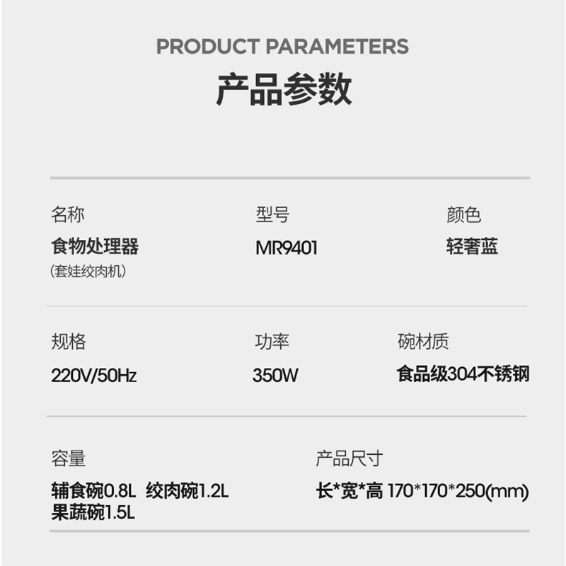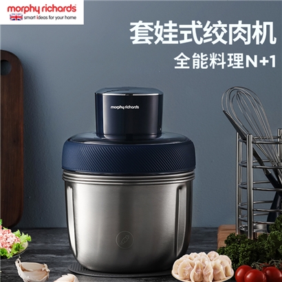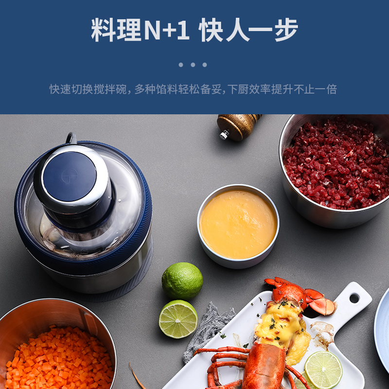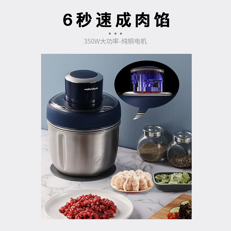 摩飞绞肉机家用电动小型多功能碎菜绞馅料理机不锈钢打肉馅搅拌机【不锈钢/轻奢蓝】