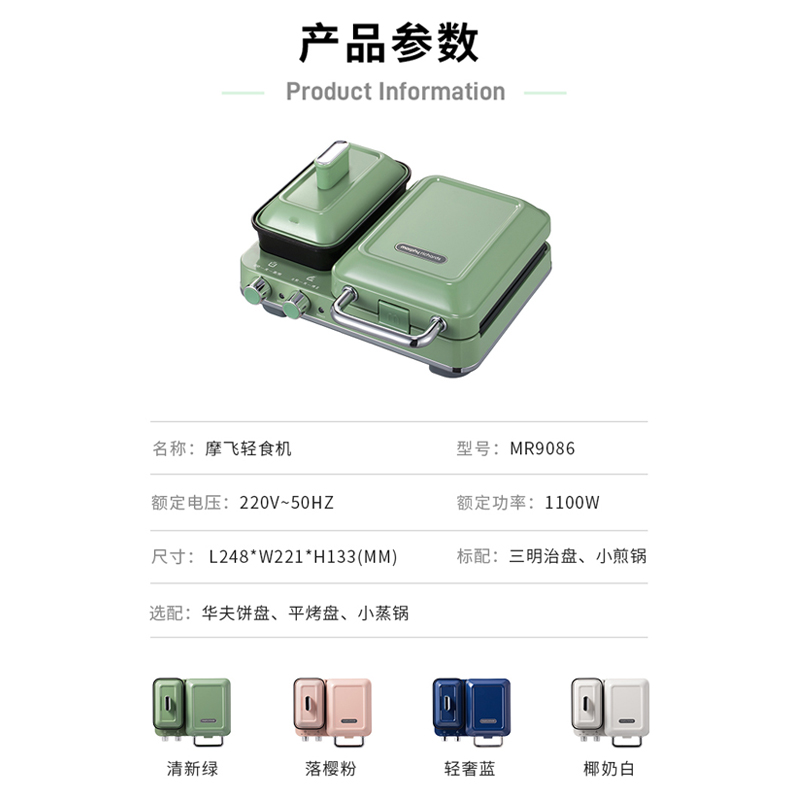 英国摩飞多功能早餐机三明治轻食机小型家用华夫饼机吐司压烤机【不锈钢/颜色】