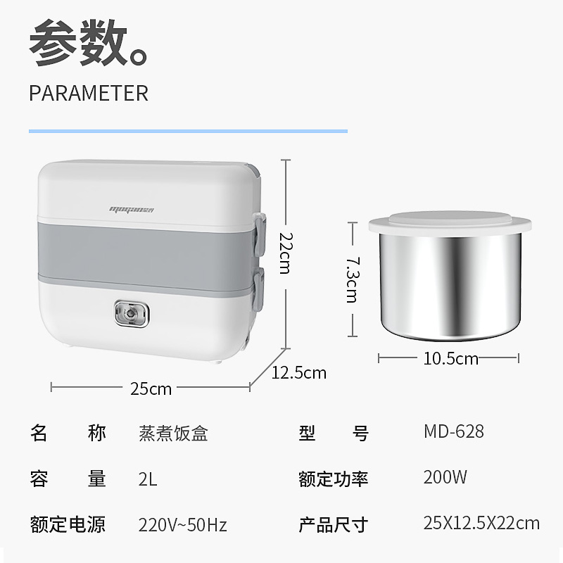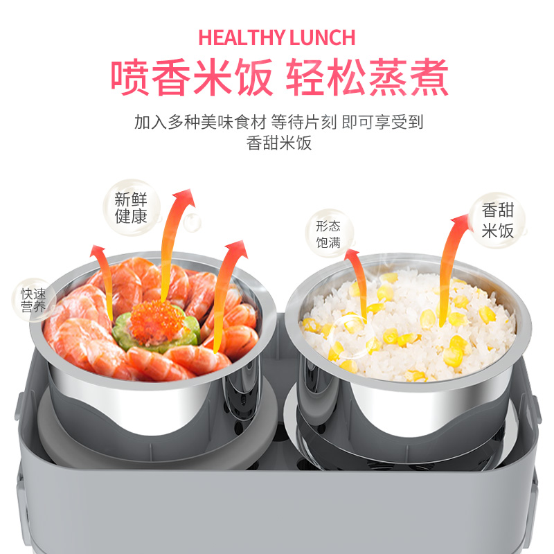 不锈钢内胆防干烧电热饭盒【食品级不锈钢/灰白】