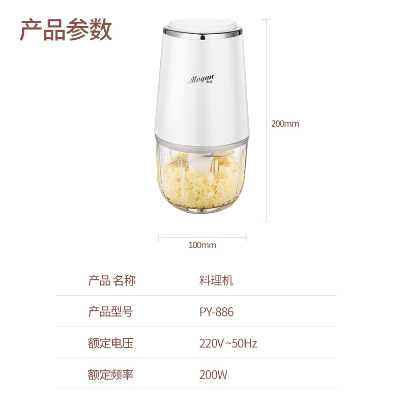 0.3L迷你绞肉机省电快捷蒙得PY-886绞肉机【玻璃/白】