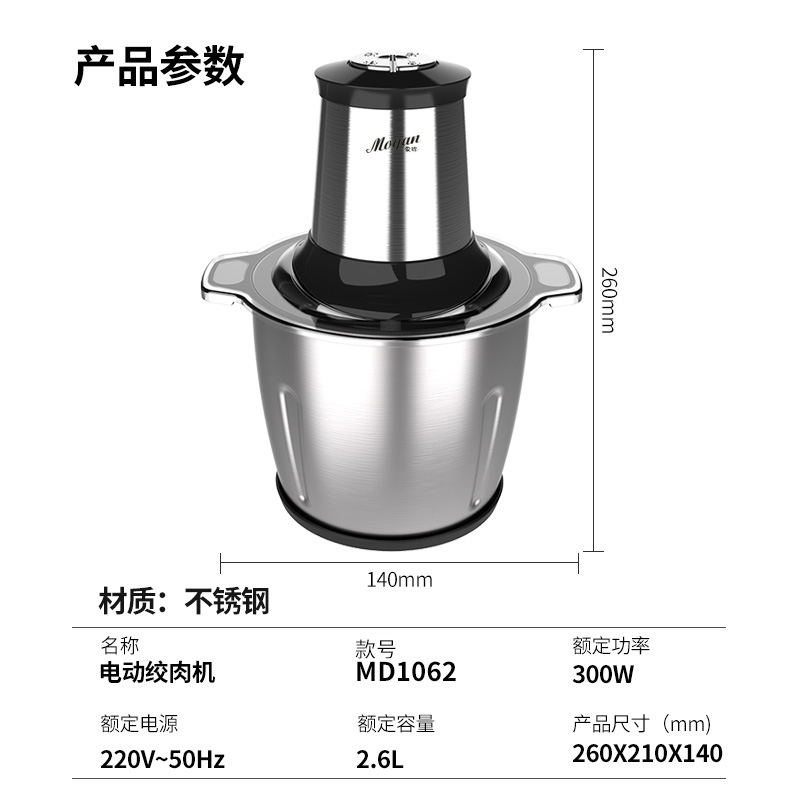 家用绞肉机(赠2刀)【不锈钢/银色】