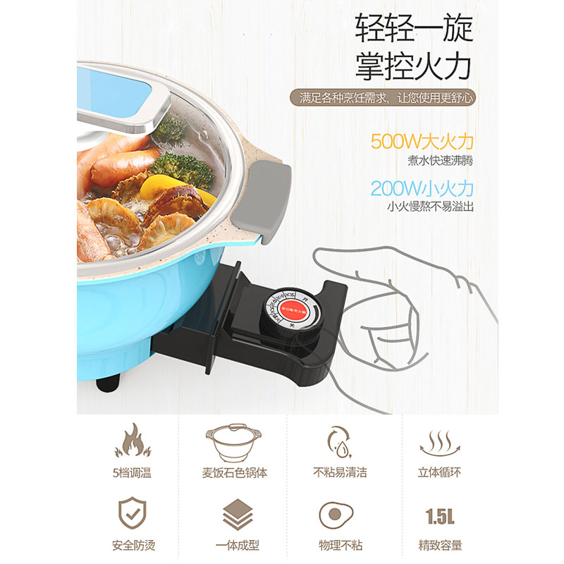 家用多功能电火锅【麦饭石涂层/蓝色】