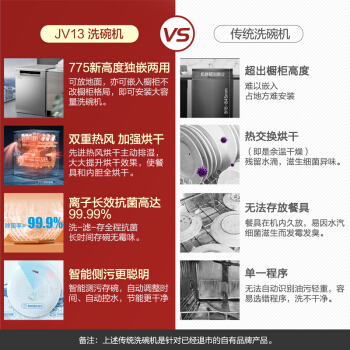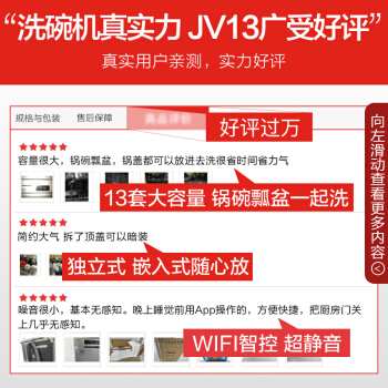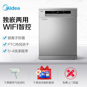 美的(Midea)13套 独立式 家用洗碗机 超大容量 银离子抑菌 热风烘干 WIFI智控 嵌入式刷碗机JV13
