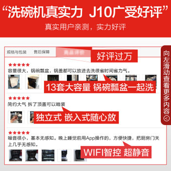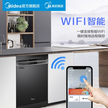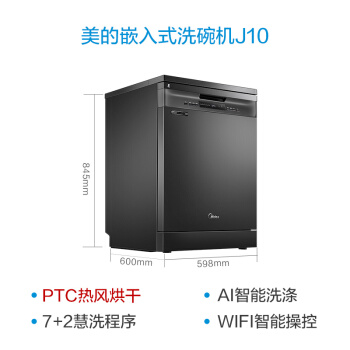 美的(Midea)13套 独立式 家用洗碗机 热风烘干 WIFI智能 洗烘一体 高温除菌 智能油污感应 嵌入式刷碗机J10