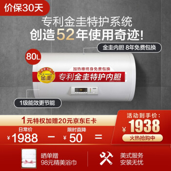 史密斯(A.O.SMITH)80升电热水器 专利金圭内胆 8年免费包换 速热节能保温款 一级能效 预约洗浴 CEWH-80A0