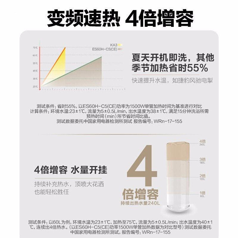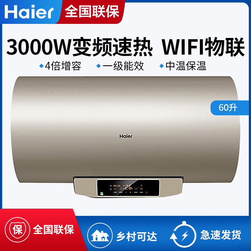 Haier/海尔 ES60H-D7(2U1)热水器电家用60升变频速热卫生间洗澡【不锈钢/金色】