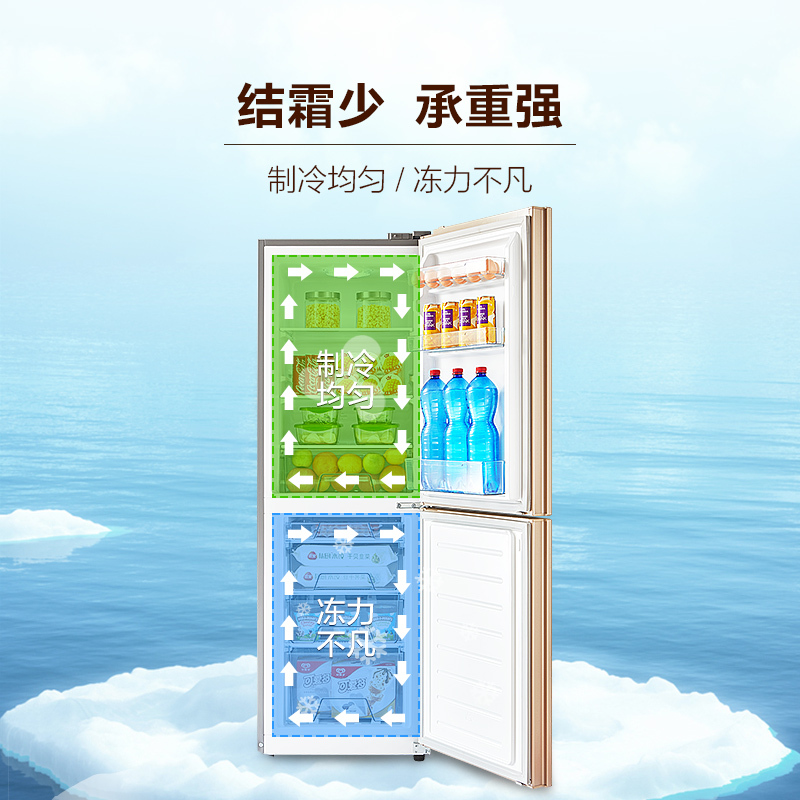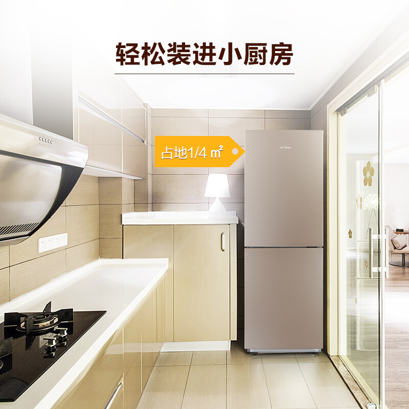 冰箱>>Midea/美的 BCD-190CM(E) 双开门两门小冰箱冷藏冷冻家用电冰箱【冰箱/金色】