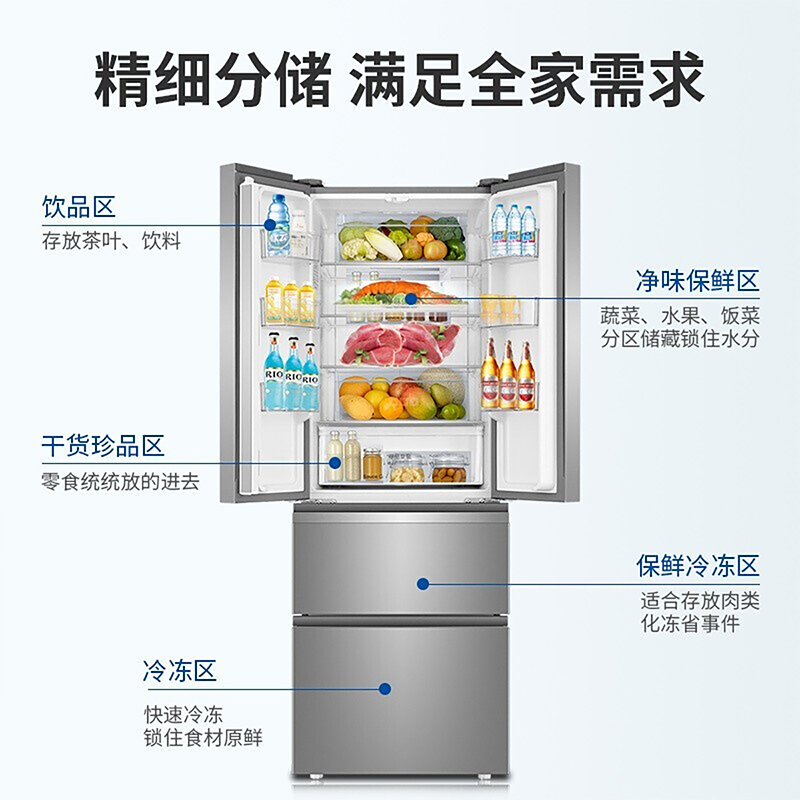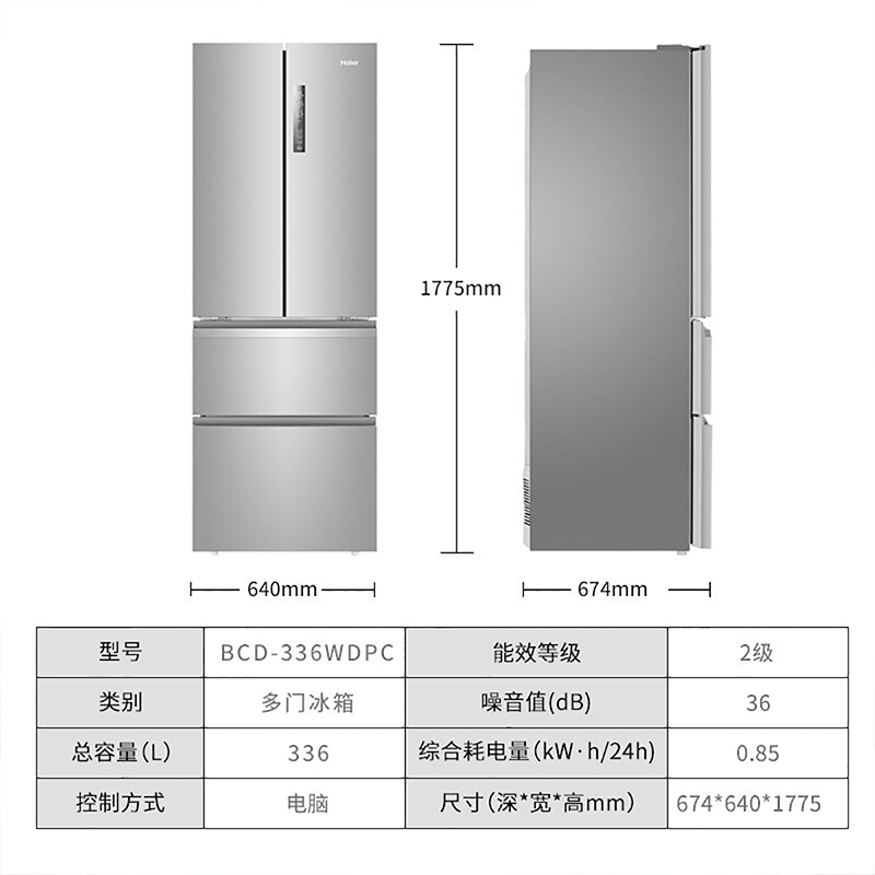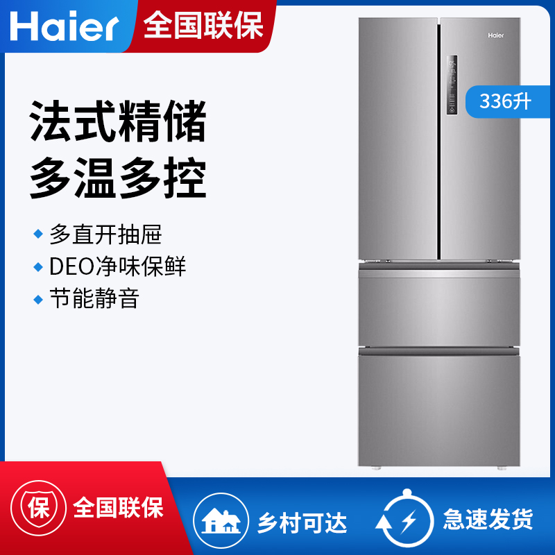 海尔BCD-336WDPC 多门四门家用电冰箱风冷无霜大容量新款节能静音【炫金钣金/月光银】