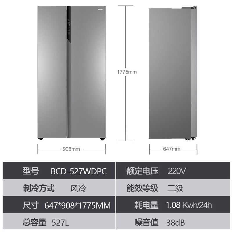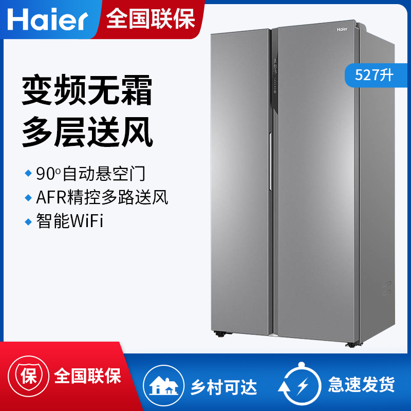 海尔BCD-527WDPC双门对开门变频无霜大容量家用冰箱【 不锈钢/月光银】