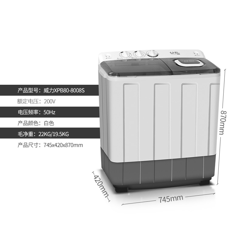 威力XPB80-8008S 8公斤半自动双缸波轮洗衣机双桶家用8kg双杠SF【洗衣机/白色】 |