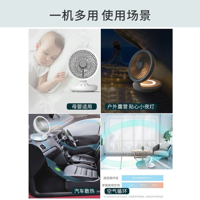 电风扇>>爱登(edon)风扇e808悬浮空气循环扇无线桌面家用小风扇 【充电款】悬浮摇头+4档风力+夜间呼吸灯【ABS材质/星空灰】