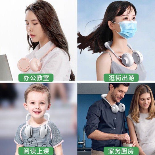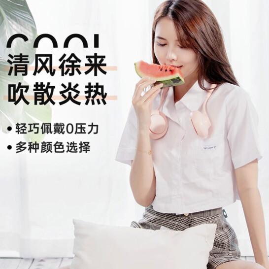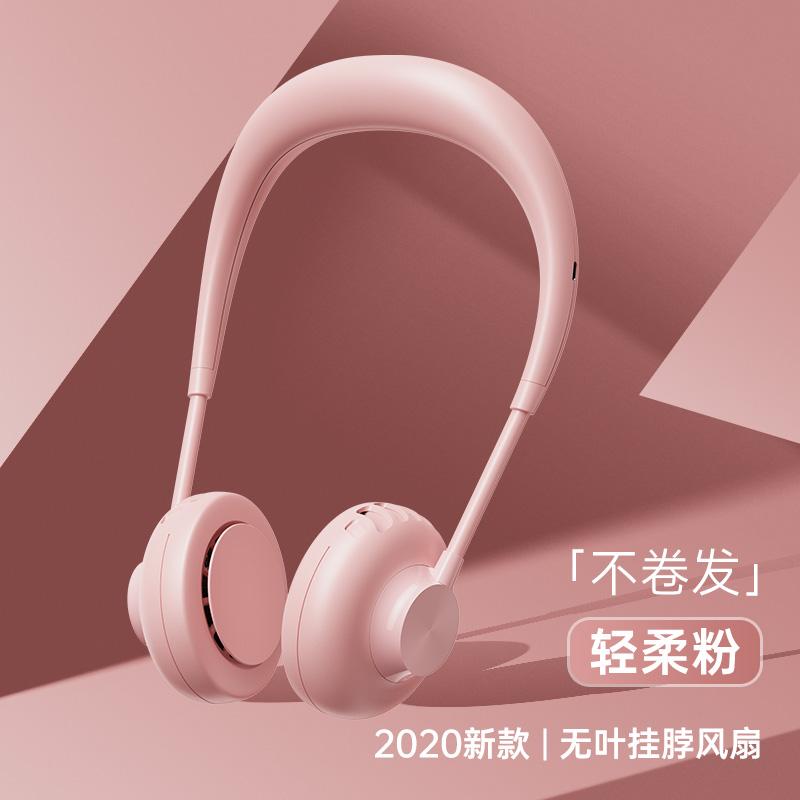 2020新款 挂脖风扇无叶USB超静音电风扇【ABS/轻柔粉】