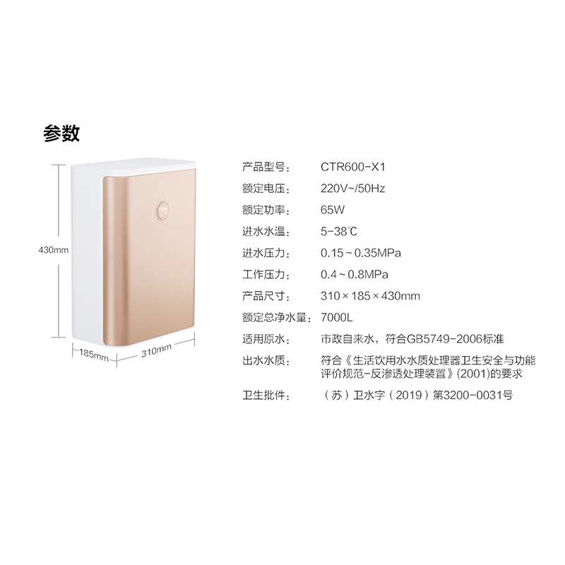 家用智能净水器600G反渗透直饮厨房自来水过滤【ABS+PP/玫瑰金】