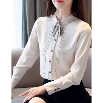 鸭鸭服饰yaya衬衫女2020女装夏季新款韩版显瘦气质修身时尚纯色衬衫女 米色 请选择正确尺码