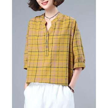 婪澈衬衫女2020女装夏季新款格子宽松薄款衬衣显瘦百搭七分袖上衣女 蓝色 请拍正确尺码 |