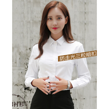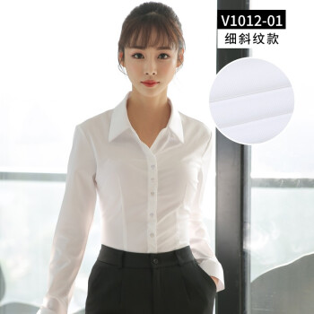 长袖衬衫女修身2020新款女士职业装商务正装白色V领大码工装衬衣酒店4S店工作服上衣 廷毅 方领(暗扣)白平纹 37 |
