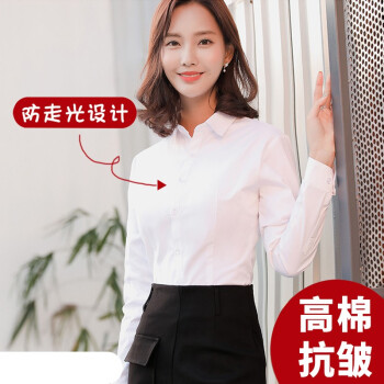 衬衫>>长袖衬衫女修身2020新款女士职业装商务正装白色V领大码工装衬衣酒店4S店工作服上衣 廷毅 方领(暗扣)白平纹 37