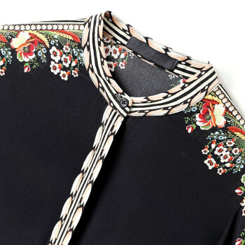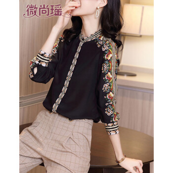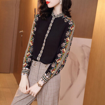 衬衫>>微尚瑶衬衫女2020秋季新款复古港风印花长袖衬衫女气质优雅设计感小众系扣开衫女上衣7008 黑色 请拍正确尺码