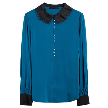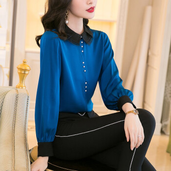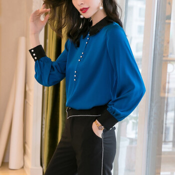 南极人 长袖衬衫女2020夏季新款女装时尚撞色绣花娃娃领衬衣原创设计纯色打底小衫上衣潮 N4-NRB42-5269-蓝色 M |