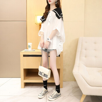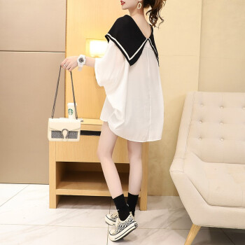 小赖猴娃娃领雪纺衬衫女中长款夏季2020新款韩版宽松大码洋气减龄上衣薄 白色 均码