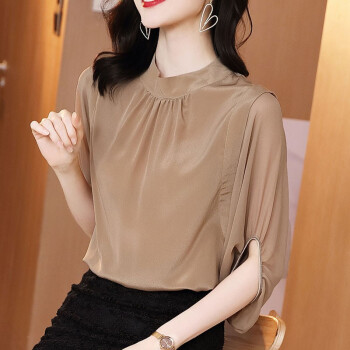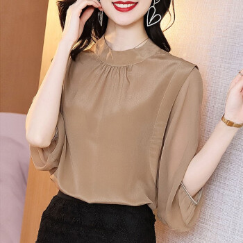 迪芽衬衫女2020秋季新品时尚韩版ins潮流纯色上衣宽松显瘦短袖圆领套头妈妈装8255 咖啡色 请拍正确尺码