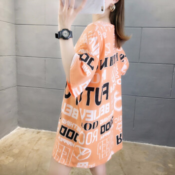 短袖T恤>>凝拉t恤女短袖纯棉2020新款夏装中长款韩版宽松大码欧货潮上衣服半袖体恤 桔色 2XL(建议150-170斤)