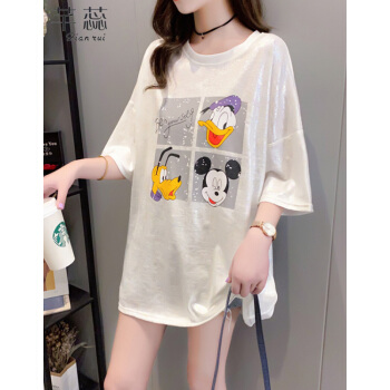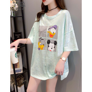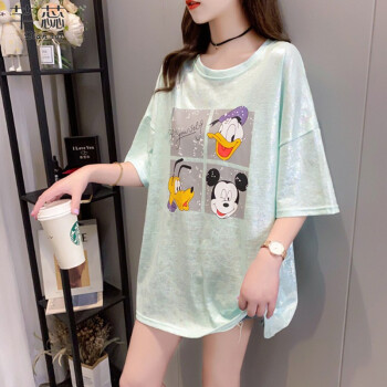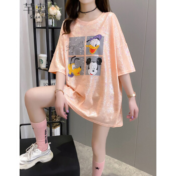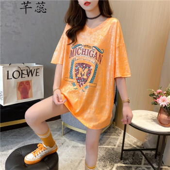 芊蕊t恤女短袖2020夏季新款韩版宽松印花字母中长款大码女装胖MM半袖打底上衣服 2389杏色 M
