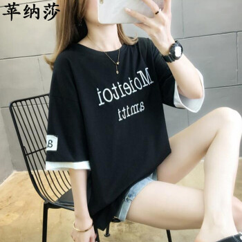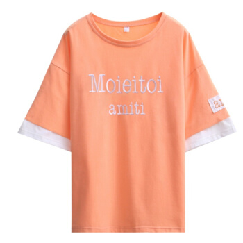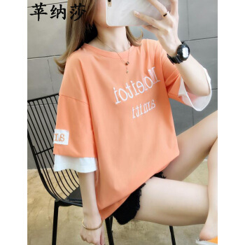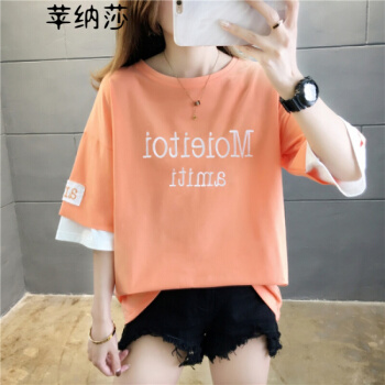 短袖T恤>>苹纳莎 短袖T恤女2020夏季新款时尚韩版宽松学生百搭时尚上衣打底潮 桔色 L (建议100斤-115斤)