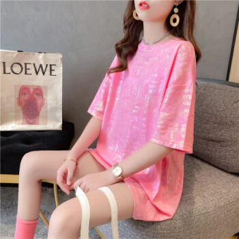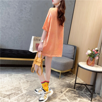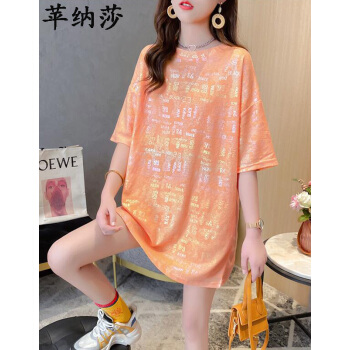 苹纳莎 短袖T恤女韩版宽松2020夏季新款时尚个性中长款亮闪闪上衣大码女装打底衣服潮 桔色 L