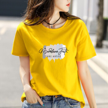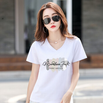 知语者女装短袖t恤女宽松体恤大码显瘦上衣2020夏季新款百搭韩版印花时尚纯色棉质t桖打底T恤女 圆领白色 L《105-115斤》 |