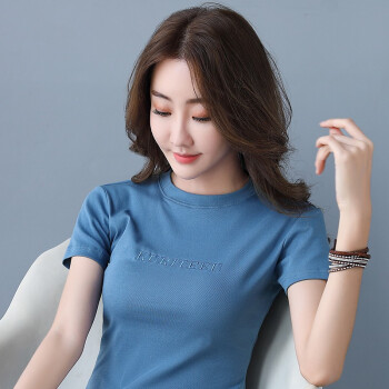 南极人 纯棉短袖t恤女2020春夏新款女装修身显瘦高弹力纯色简约百搭圆领多色可选刺绣字母上衣打底衫 深灰色 M |