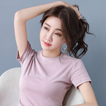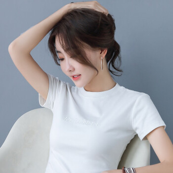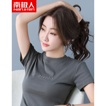 短袖T恤>>南极人 纯棉短袖t恤女2020春夏新款女装修身显瘦高弹力纯色简约百搭圆领多色可选刺绣字母上衣打底衫 深灰色 M