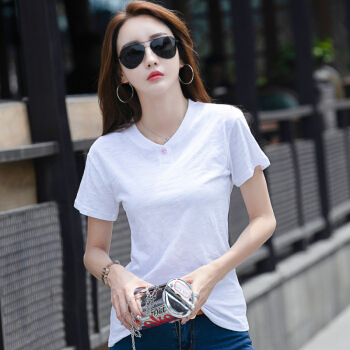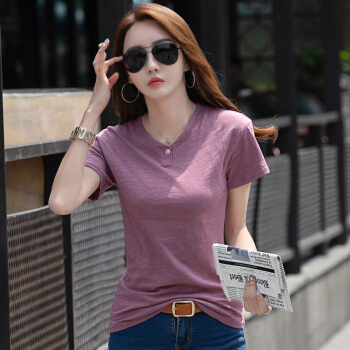 红粉宣言2020夏季新款百搭宽松竹节棉大码T恤女短袖 蓝色 L