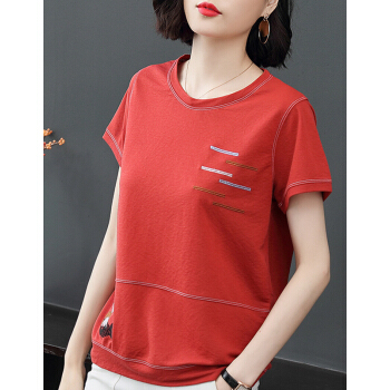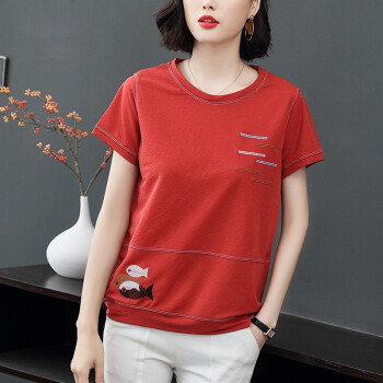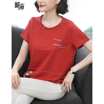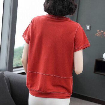 短袖T恤>>【精选好货】晞薇2020夏装新款宽松大码女装半袖上衣中年妈妈装红色短袖t恤女夏小衫OL通勤百搭上衣衫 红色 M