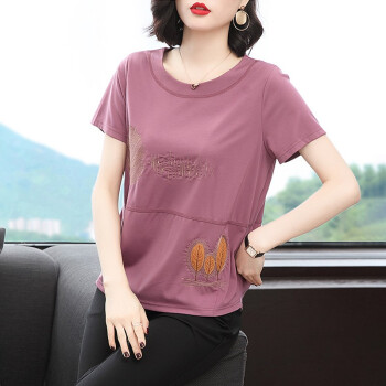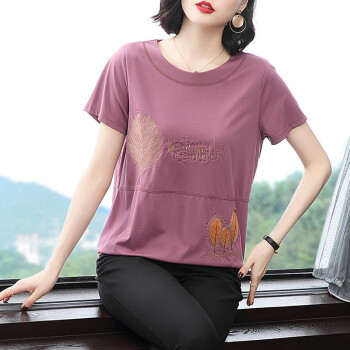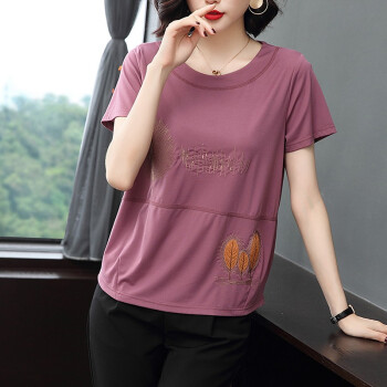 短袖T恤>>【精选好货】晞薇紫色宽松t恤女2020夏季新款短袖半袖女装夏装百搭体恤中老年妈妈装大码上衣女 紫红色 请拍正确尺码