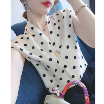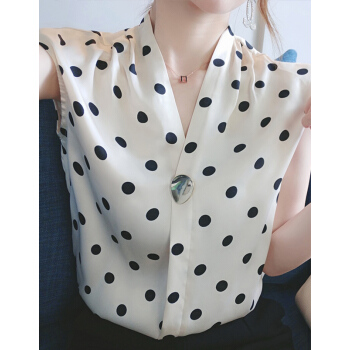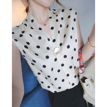 短袖T恤>>南极人 雪纺短袖t恤女士夏装2020新品法式波点v领小心机简约遮肚减龄休闲ins百搭上衣体恤 N2-NRB41-7871-波点上衣 M