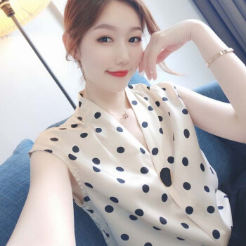 南极人 雪纺短袖t恤女士夏装2020新品法式波点v领小心机简约遮肚减龄休闲ins百搭上衣体恤 N2-NRB41-7871-波点上衣 M |