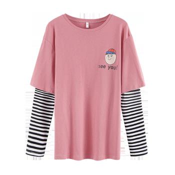 纯棉长袖t恤女2020春秋新款韩版学生百搭宽松上衣打底衫 7059粉 S 65-70斤