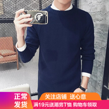 琛倪秋冬季新款套头纯色低领半高领毛衣男韩版潮流青少年学生时尚百搭针织衫打底衫 深蓝色 M
