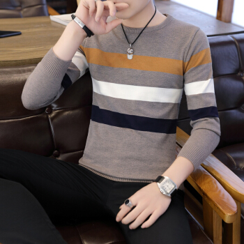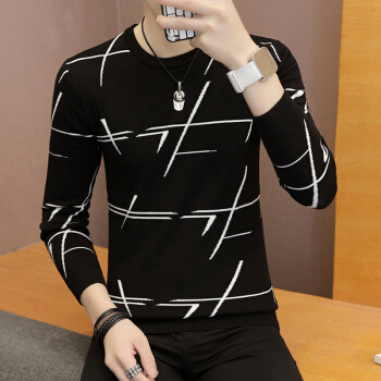 圆领毛衣男士针织衫秋冬季休闲有加绒加厚新款时尚修身男士套头打底毛线衣韩版潮流上衣服帅气青年男装 不加绒67090红线-黑色 XL